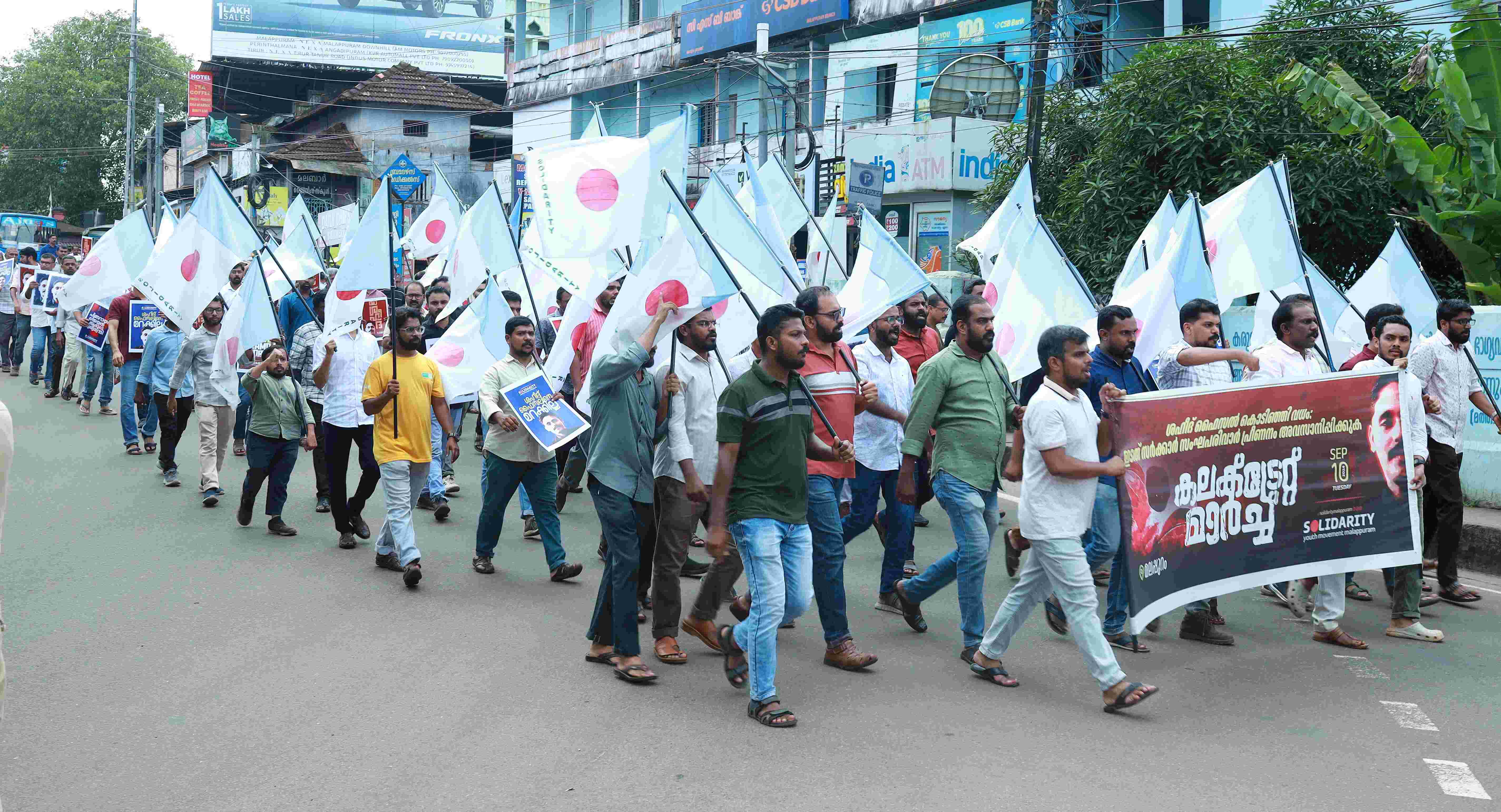മലപ്പുറം: ആര്എസ്എസുകാര് കൊലപ്പെടുത്തിയ കൊടിഞ്ഞി ഫൈസല് കൊലക്കേസില് പ്രതികളെ സഹായിക്കുന്ന ഇടത് സര്ക്കാറിനെതിരേ സോളിഡാരിറ്റി മലപ്പുറം ജില്ലാ കമ്മിറ്റി കലക് ടറേറ്റ് മാര്ച്ച് സംഘടിപ്പിച്ചു. 'ശഹീദ് ഫൈസല് വധം: ഇടതു സര്ക്കാര് സംഘപരിവാര് പ്രീണനം അവസാനിപ്പിക്കുക' എന്ന ആവശ്യമുന്നയിച്ച് നടന്ന മാര്ച്ച് ജമാഅത്തെ ഇസ് ലാമി സംസ്ഥാന സെക്രട്ടറി ശിഹാബ് പൂക്കോട്ടൂര് ഉദ്ഘാടനം ചെയ്തു. സോളിഡാരിറ്റി ജില്ലാ വൈസ് പ്രസിഡന്റ് കെ പി അജ്മല് അധ്യക്ഷത വഹിച്ചു. സംസ്ഥാന പ്രസിഡന്റ് സി ടി സുഹൈബ്, ആക്ടിവിസ്റ്റ് അഡ്വ. അമീന് ഹസന്, കൊടിഞ്ഞി ഫൈസല് ആക്ഷന് കൗണ്സില് സെക്രട്ടറി സലീം പൂഴിക്കല്, വെല്ഫയര് പാര്ട്ടി ജില്ലാ ഖജാഞ്ചി മുനീബ് കാരക്കുന്ന്, എസ്ഐഒ ജില്ലാ പ്രസിഡന്റ് ടി അനീസ്, യൂത്ത് ലീഗ് തിരൂരങ്ങാടി മണ്ഡലം പ്രസിഡന്റ് യു എ റസാഖ്, സംസാരിച്ചു.