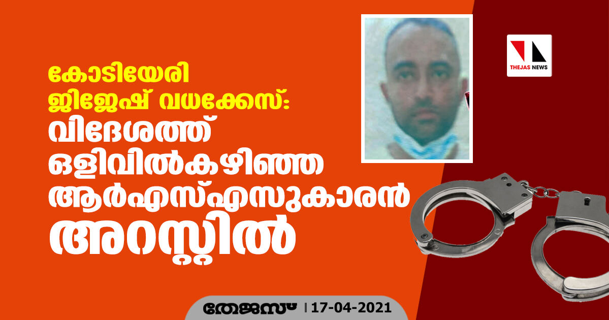 കോടിയേരി ജിജേഷ് വധക്കേസ്: വിദേശത്ത് ഒളിവില്കഴിഞ്ഞ ആര്എസ്എസുകാരന് അറസ്റ്റില്