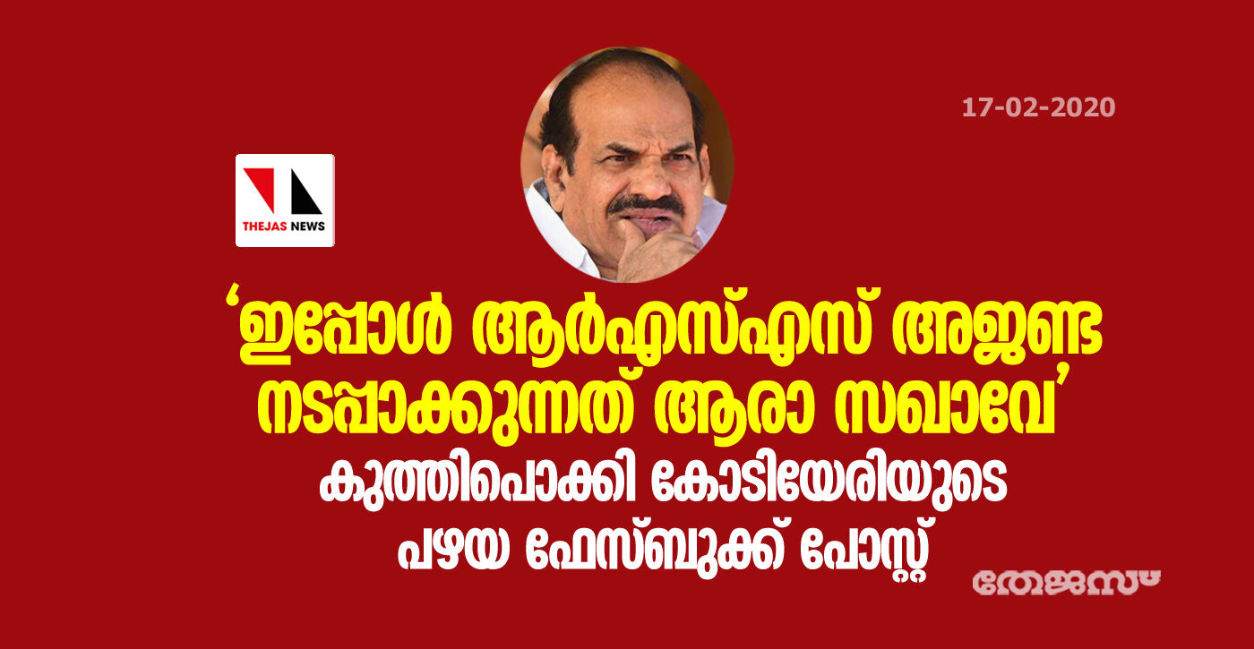 'ഇപ്പോള് ആര്എസ്എസ് അജണ്ട നടപ്പാക്കുന്നത് ആരാ സഖാവേ'? കുത്തി പൊക്കി കോടിയേരിയുടെ പഴയ ഫേസ്ബുക്ക് പോസ്റ്റ്