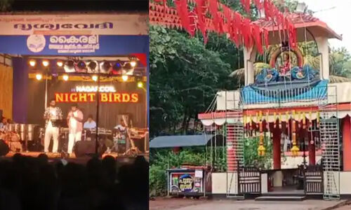 കൊല്ലം: കടയ്ക്കല് കോട്ടുക്കല് മഞ്ഞിപ്പുഴ ക്ഷേത്രത്തില് ഉത്സവത്തിലെ ഗാനമേളയില് ആര്എസ്എസ് ഗണഗീതം പാടിയ സംഭവത്തില് കേസെടുത്തു. ഗാനമേള നടത്തിയവരെ ഒന്നാം പ്രതിയാക്കിയും ക്ഷേത്ര ഉപദേശക സമിതിയെ രണ്ടാം പ്രതിയാക്കിയും ഉത്സവ ആഘോഷ കമ്മിറ്റിയെ മൂന്നാം പ്രതിയാക്കിയുമാണ് കടക്കല് പോലിസ് കേസെടുത്തിരിക്കുന്നത്. കോട്ടുക്കല് സ്വദേശി പ്രതിന് നല്കിയ പരാതിയില് ആണ് കേസ്.
