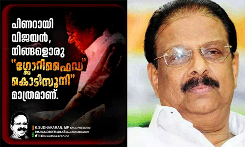 പിണറായി വിജയന്, നിങ്ങളൊരു 'ഗ്ലോറിഫൈഡ് കൊടി സുനി ' മാത്രമാണ്. മറ്റുള്ളവരുടെ കണ്ണീരും വിഷമവും കാണുമ്പോള് സന്തോഷം തോന്നുന്ന അപൂര്വം ക്രൂര ജന്മങ്ങളില് ഒന്ന്'. കെ സുധാകരന് കുറിച്ചു.