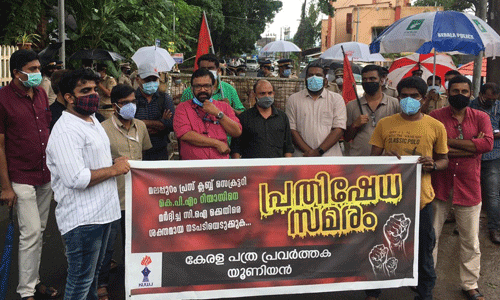 കേരള പത്രപ്രവര്ത്തക യൂനിയന് ജില്ലാ പ്രസിഡന്റ് ഷംസുദ്ദീന് മുബാറക് അധ്യക്ഷത വഹിച്ചു. സംസ്ഥാന സമിതിയംഗം എസ് മഹേഷ് കുമാര്, ഷംസീര്, രാജീവ്, സുരേഷ് എടപ്പാള് സംസാരിച്ചു. മാര്ച്ച് എസ് പി ഓഫിസിനു സമീപം പോലിസ് തടഞ്ഞു.
