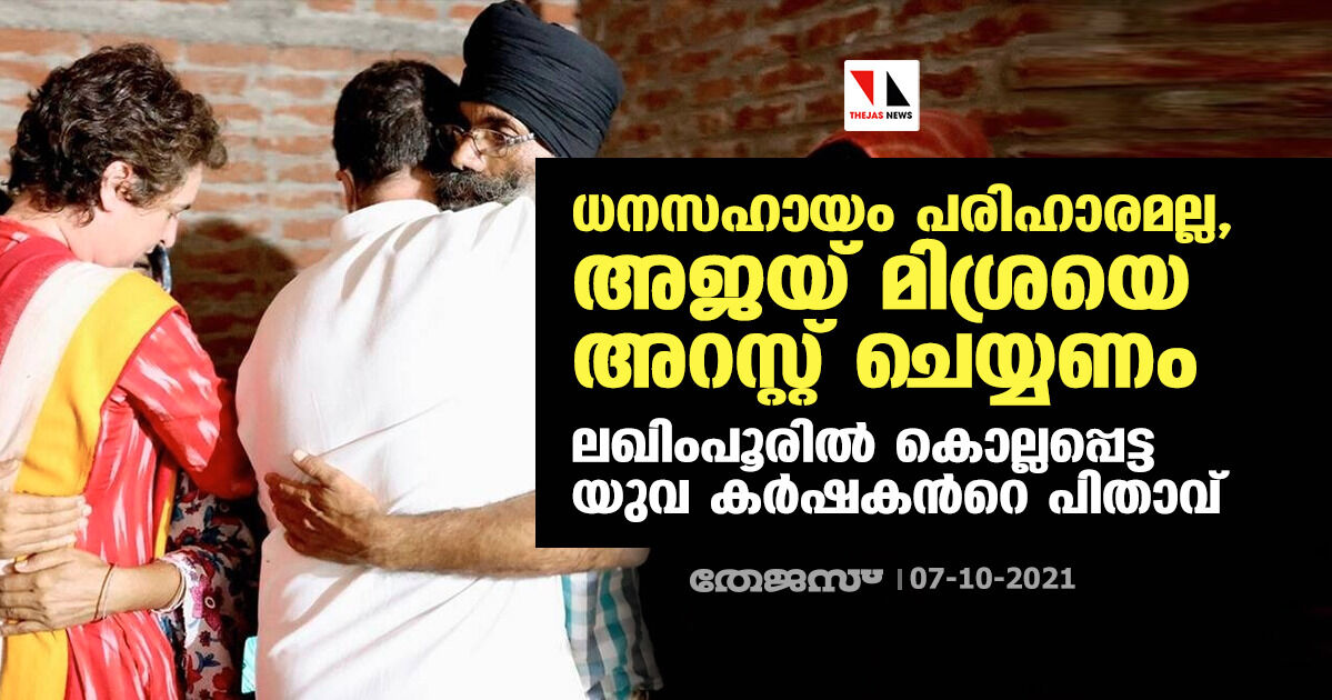 ധനസഹായം പരിഹാരമല്ല, അജയ് മിശ്രയെ അറസ്റ്റ് ചെയ്യണം; ലഖിംപൂരിൽ കൊല്ലപ്പെട്ട യുവ കർഷകന്റെ അച്ഛൻ