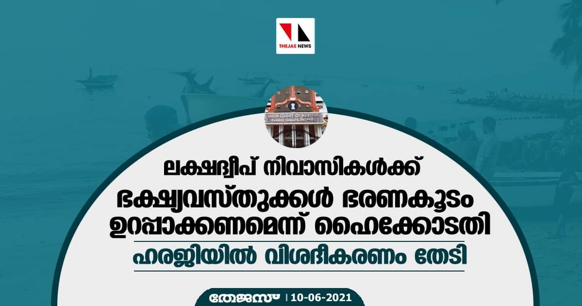 ലക്ഷദ്വീപ് നിവാസികള്ക്ക് ഭക്ഷ്യവസ്തുക്കള് ഭരണകൂടം ഉറപ്പാക്കണമെന്ന് ഹൈക്കോടതി; ഹരജിയില് വിശദീകരണം തേടി