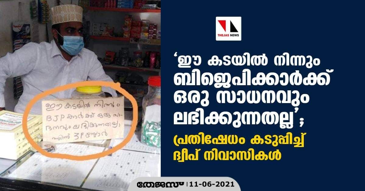 ഈ കടയില് നിന്നും ബിജെപിക്കാര്ക്ക് ഒരു സാധനവും ലഭിക്കുന്നതല്ല'; പ്രതിഷേധം കടുപ്പിച്ച് ദ്വീപ് നിവാസികൾ
