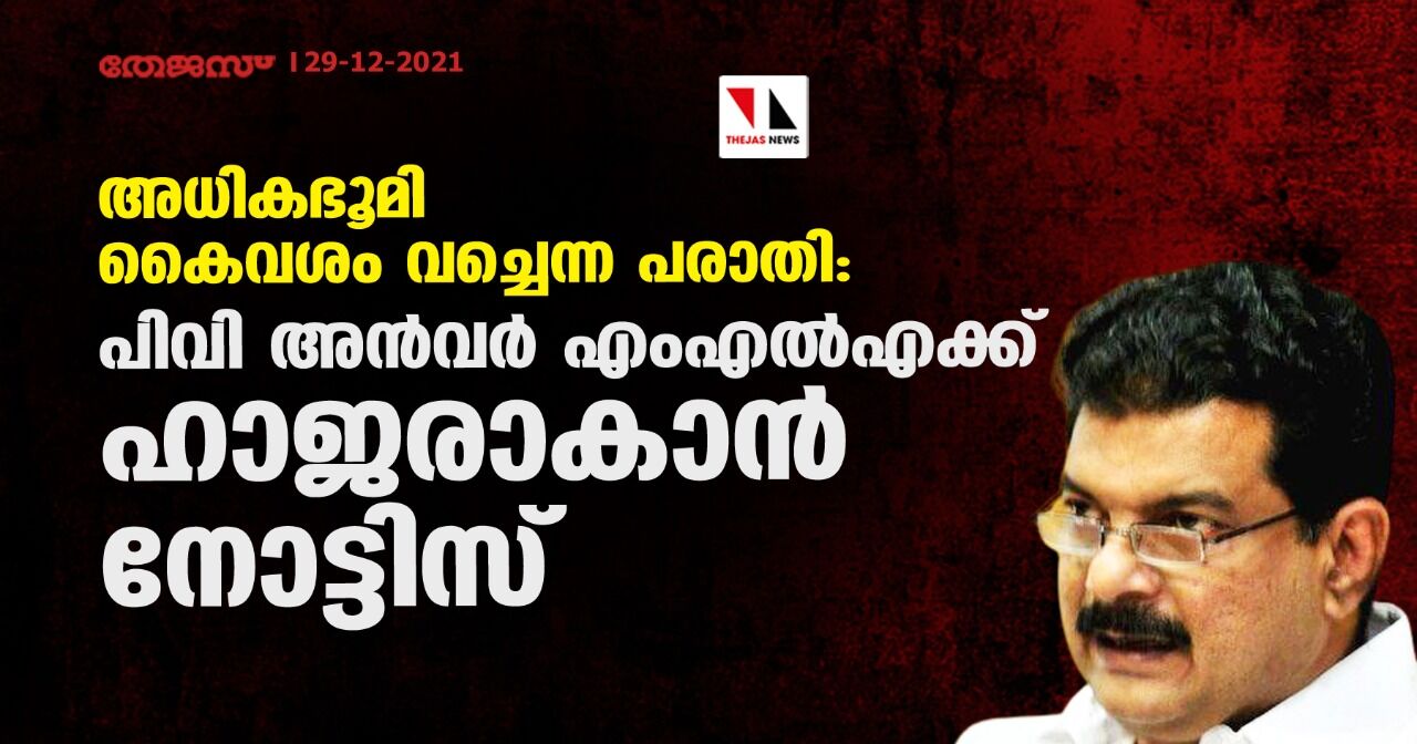 അധികഭൂമി കൈവശം വച്ചെന്ന പരാതി: പിവി അൻവർ എംഎൽഎക്ക് ഹാജരാകാൻ നോട്ടിസ്