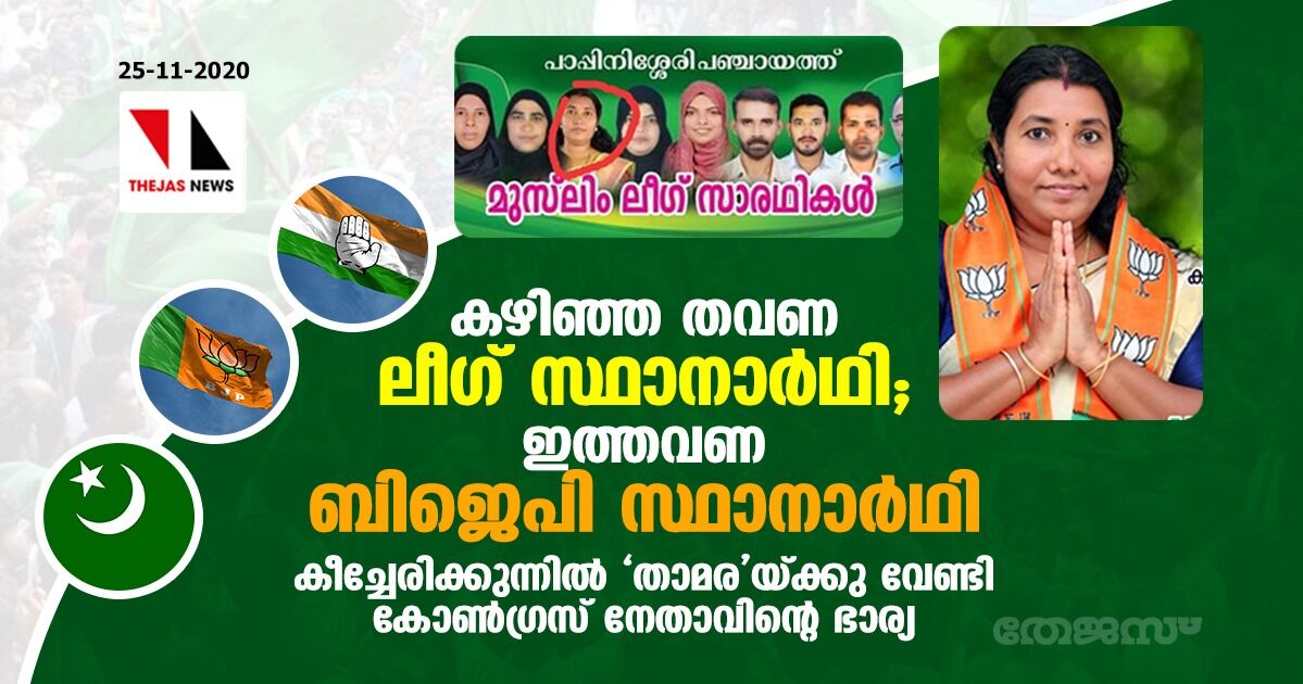 കഴിഞ്ഞ തവണ ലീഗ് സ്ഥാനാര്ഥി, ഇത്തവണ ബിജെപി സ്ഥാനാര്ഥി; കീച്ചേരിക്കുന്നില് 'താമര'യ്ക്കു വേണ്ടി കോണ്ഗ്രസ് നേതാവിന്റെ ഭാര്യ