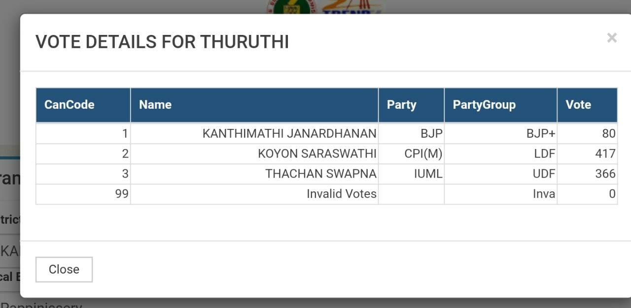 തുരുത്തി വാര്ഡിലെ കഴിഞ്ഞ തവണത്തെ വോട്ട് നില
