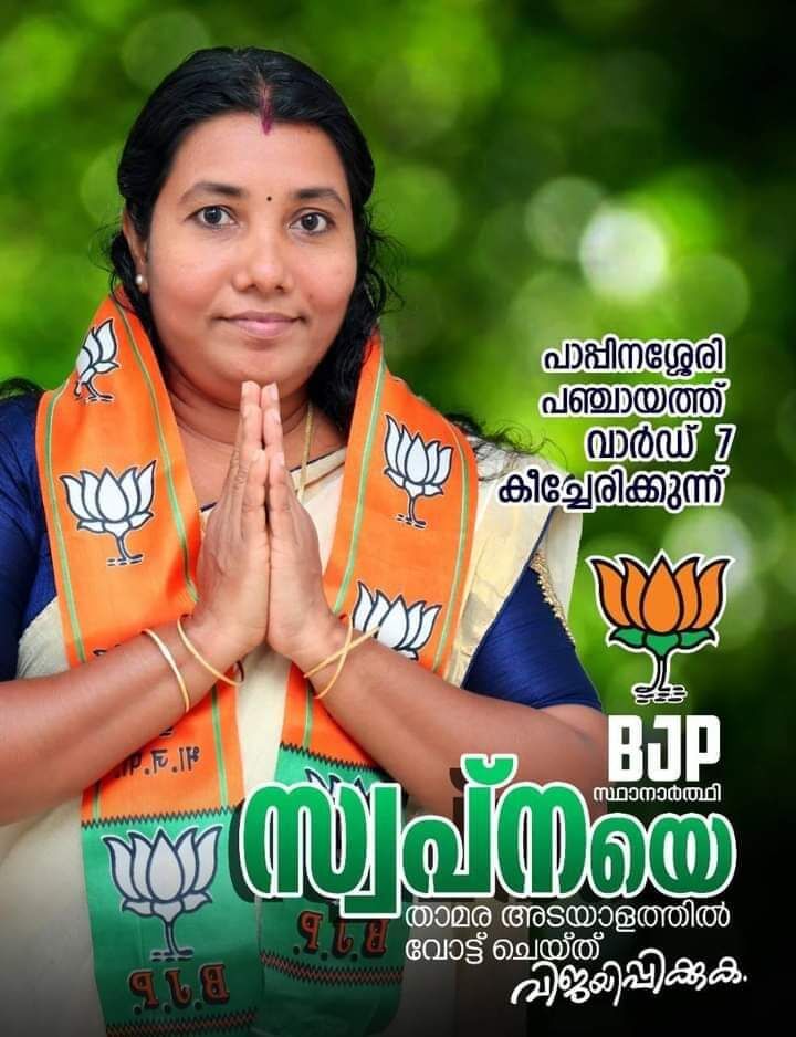 കീച്ചേരിക്കുന്നില് ബിജെപി സ്ഥാനാര്ഥിയായ സ്വപ്നയുടെ പ്രചാരണ പോസ്റ്റര്