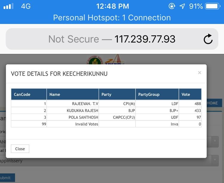 കീച്ചേരിക്കുന്നിലെ കഴിഞ്ഞ തവണത്തെ വോട്ട് നില