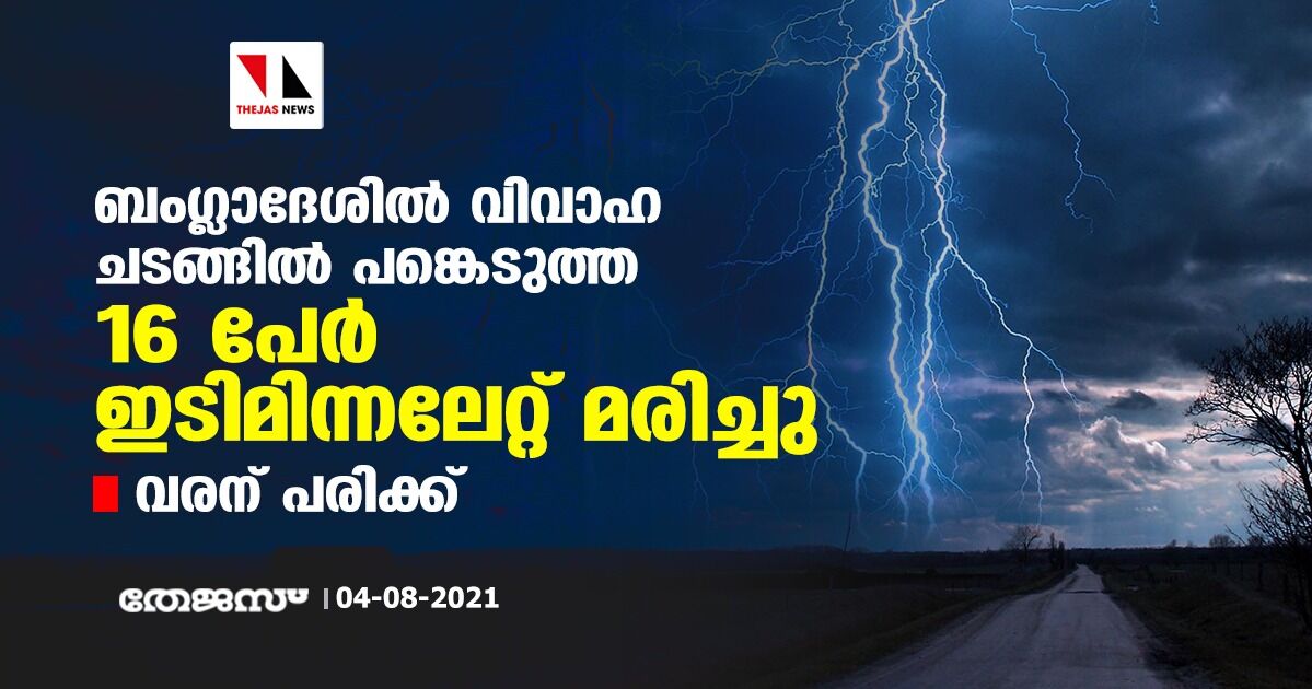 ബംഗ്ലാദേശില് വിവാഹ ചടങ്ങില് പങ്കെടുത്ത 16 പേര് ഇടിമിന്നലേറ്റ് മരിച്ചു; വരന് പരിക്ക്