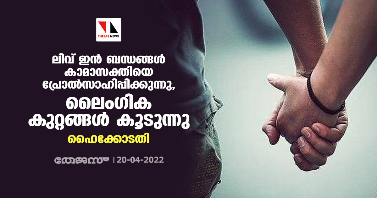 ലിവ് ഇന് ബന്ധങ്ങള് കാമാസക്തിയെ പ്രോൽസാഹിപ്പിക്കുന്നു, ലൈംഗിക കുറ്റങ്ങള് കൂടുന്നു: ഹൈക്കോടതി