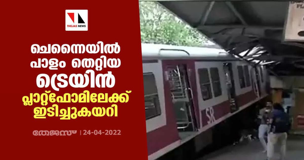 ചെന്നൈയില് പാളം തെറ്റിയ ട്രെയിന് പ്ലാറ്റ്ഫോമിലേക്ക് ഇടിച്ചുകയറി