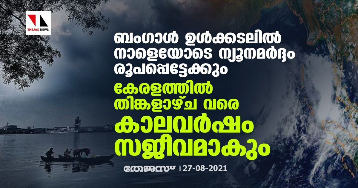 ബംഗാള് ഉള്ക്കടലില് നാളെയോടെ ന്യൂനമര്ദ്ദം രൂപപ്പെട്ടേക്കും;കേരളത്തില് തിങ്കളാഴ്ച വരെ കാലവര്ഷം സജീവമാകും