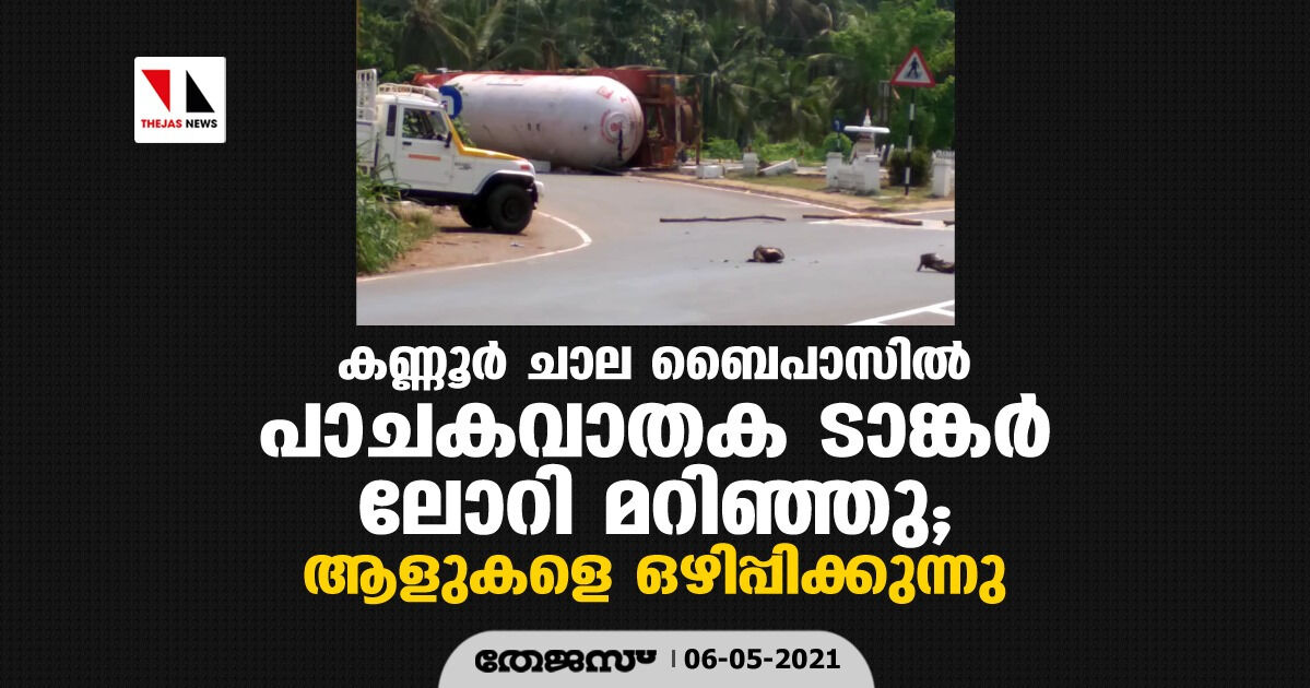 കണ്ണൂര് ചാല ബൈപാസില് പാചകവാതക ടാങ്കര് ലോറി മറിഞ്ഞു; ആളുകളെ ഒഴിപ്പിക്കുന്നു