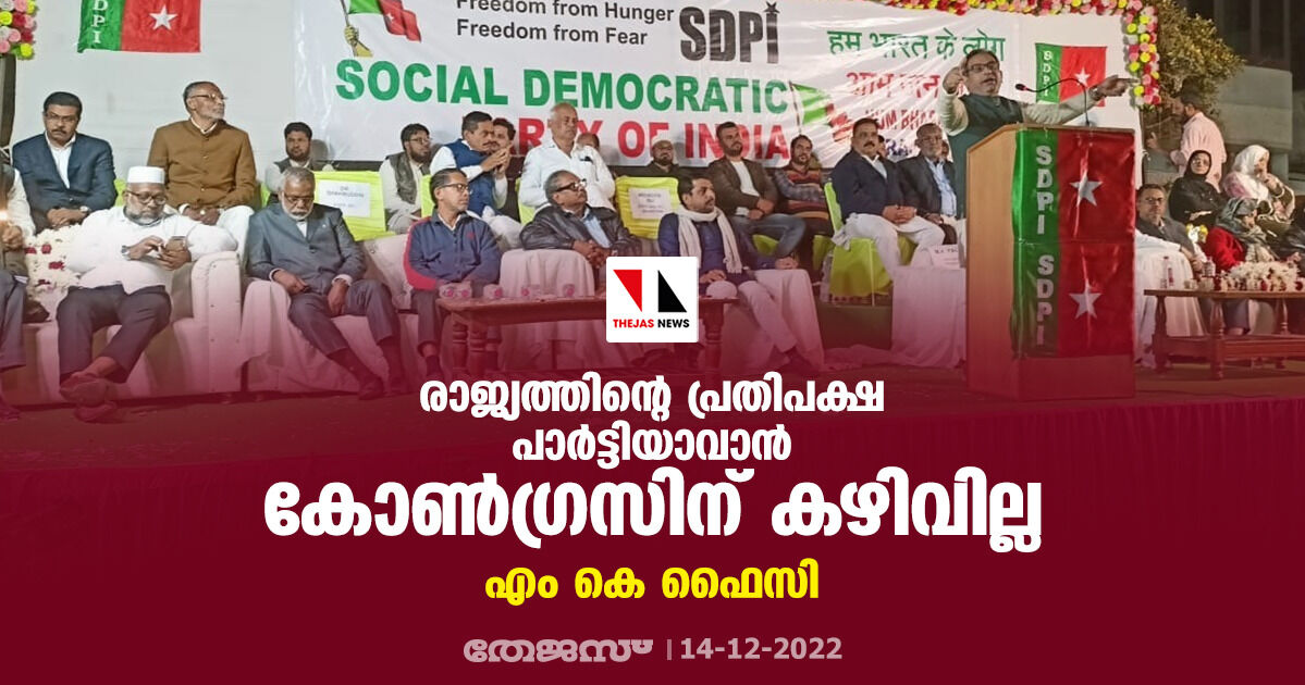 രാജ്യത്തിന്റെ പ്രതിപക്ഷ പാര്ട്ടിയാവാന് കോണ്ഗ്രസിന് കഴിവില്ല: എം കെ ഫൈസി