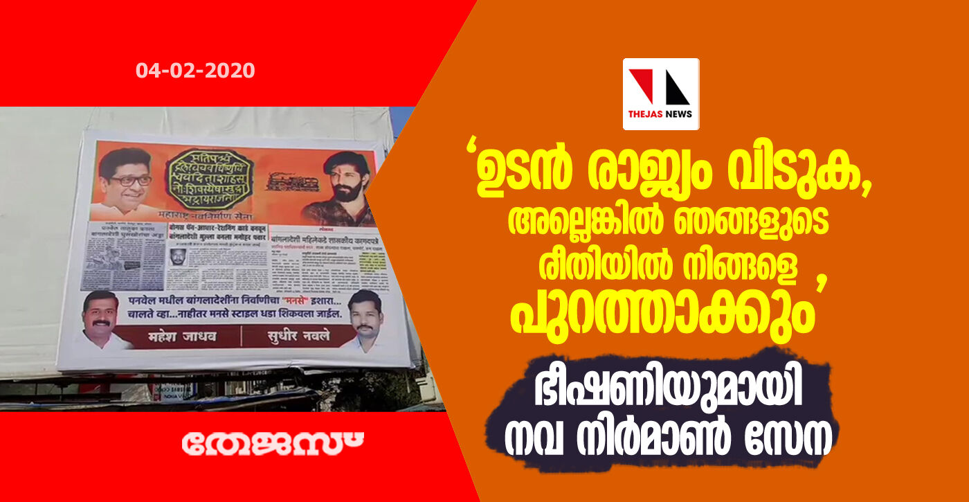 'ഉടന് രാജ്യം വിടുക, അല്ലെങ്കില് ഞങ്ങളുടെ രീതിയില് നിങ്ങളെ പുറത്താക്കും'; ഭീഷണിയുമായി നവ നിര്മാണ് സേന