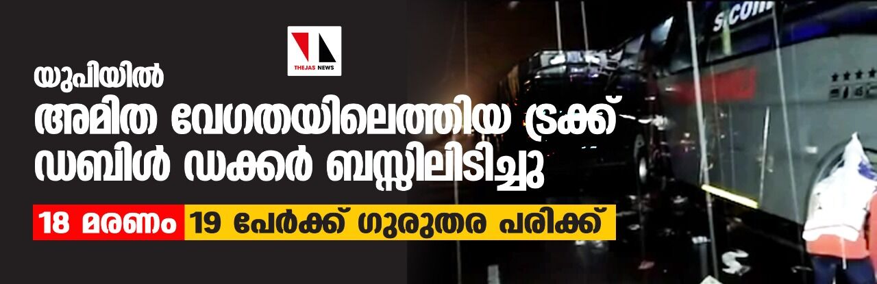 യുപിയില് അമിത വേഗതയിലെത്തിയ ട്രക്ക് ഡബിള് ഡക്കര് ബസ്സിലിടിച്ചു; 18 മരണം, 19 പേര്ക്ക് ഗുരുതര പരിക്ക്