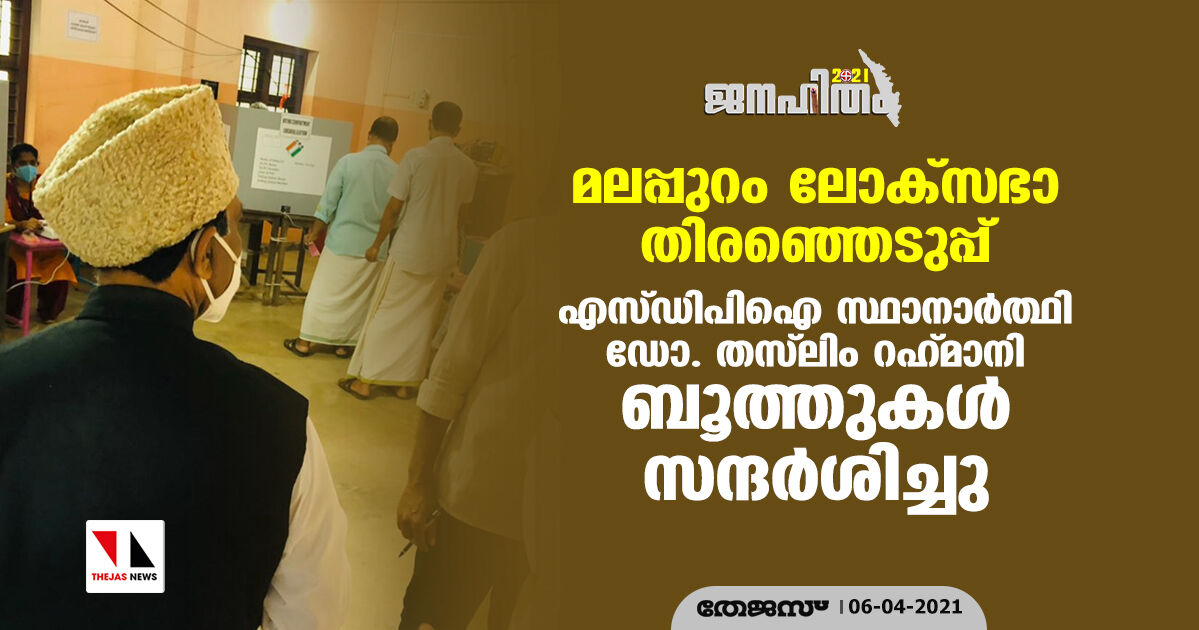 മലപ്പുറം ലോക്സഭാ തിരഞ്ഞെടുപ്പ്: എസ് ഡിപിഐ സ്ഥാനാര്ത്ഥി ഡോ. തസ്ലിം റഹ്മാനി ബൂത്തുകള് സന്ദര്ശിച്ചു