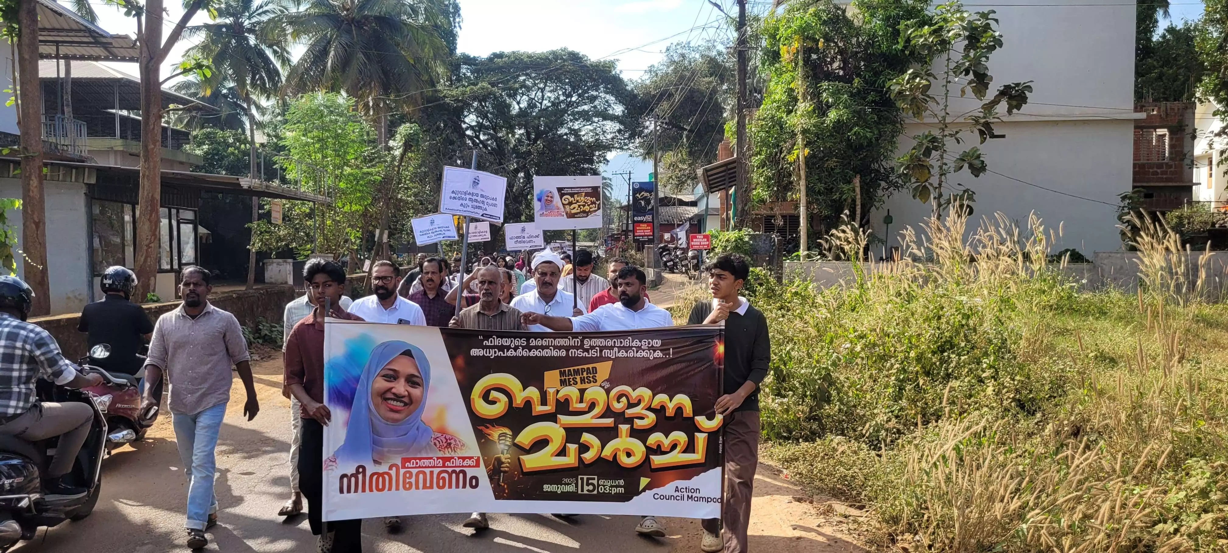 ഫാത്തിമ ഫിദയുടെ മരണം; സ്കൂളിലേക്ക് ബഹുജന റാലി നടത്തി ആക്ഷന് കൗണ്സില്