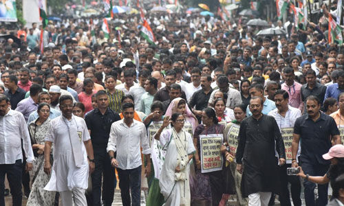 കൊല്ക്കത്ത: ബംഗാളി ഭാഷ സംസാരിക്കുന്നവരെ ബിജെപി ഭരിക്കുന്ന സംസ്ഥാനങ്ങള് ജയിലില് അടയ്ക്കുകയാണെന്ന് പശ്ചിമബംഗാള് മുഖ്യമന്ത്രി മമതാ ബാനര്ജി. ബംഗാള് ഇന്ത്യയുടെ ഭാഗമല്ലേയെന്നും മമത ചോദിച്ചു. ബംഗാളി തൊഴിലാളികളെ ബിജെപി സര്ക്കാരുകള് വേട്ടയാടുന്നതിനെ ചോദ്യം ചെയ്ത് നടത്തിയ പ്രതിഷേധത്തില് സംസാരിക്കുകയായിരുന്നു മമത.