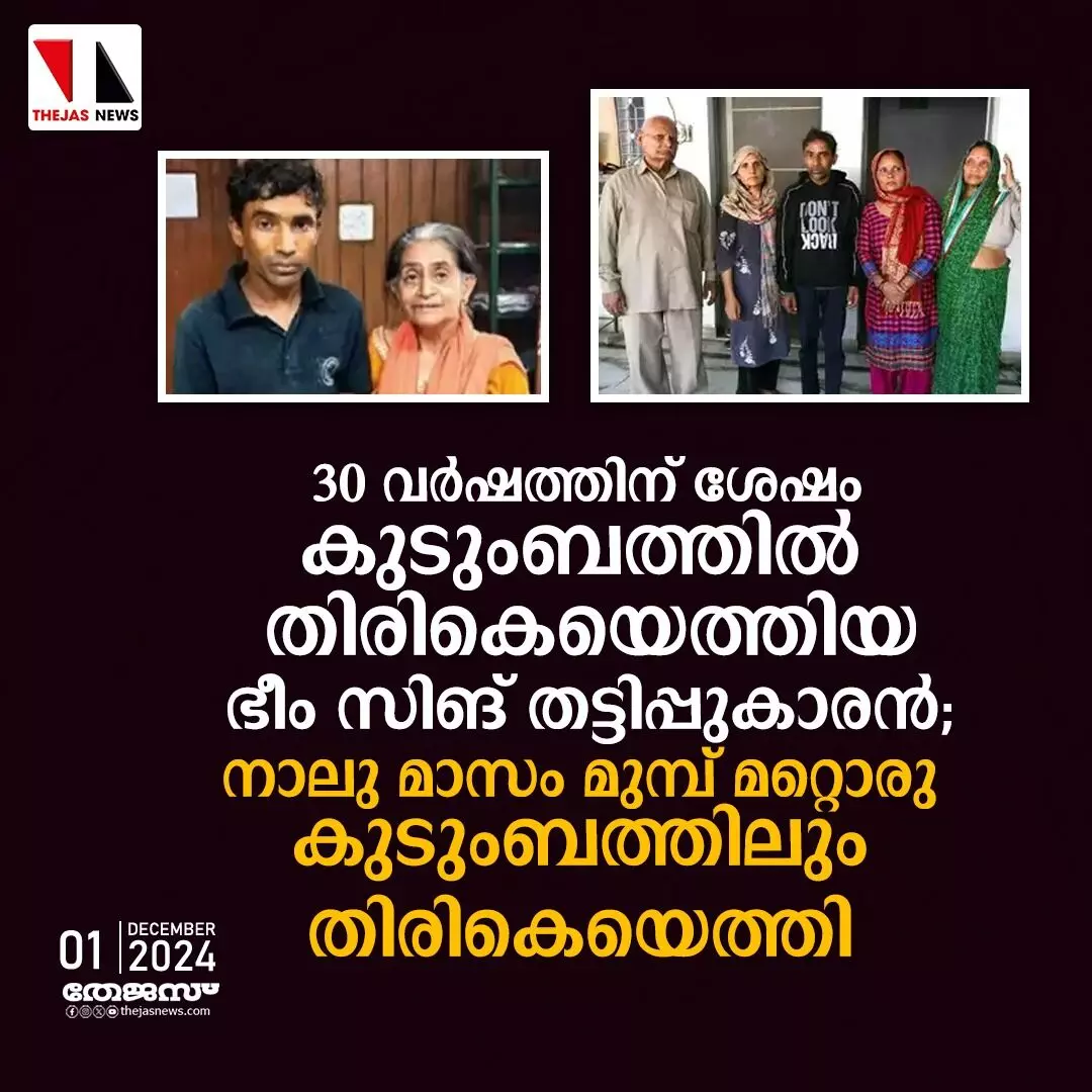 30 വര്ഷത്തിന് ശേഷം കുടുംബത്തില് തിരികെയെത്തിയ ഭീം സിങ് തട്ടിപ്പുകാരന്; നാലു മാസം മുമ്പ് മറ്റൊരു കുടുംബത്തിലും തിരികെയെത്തി
