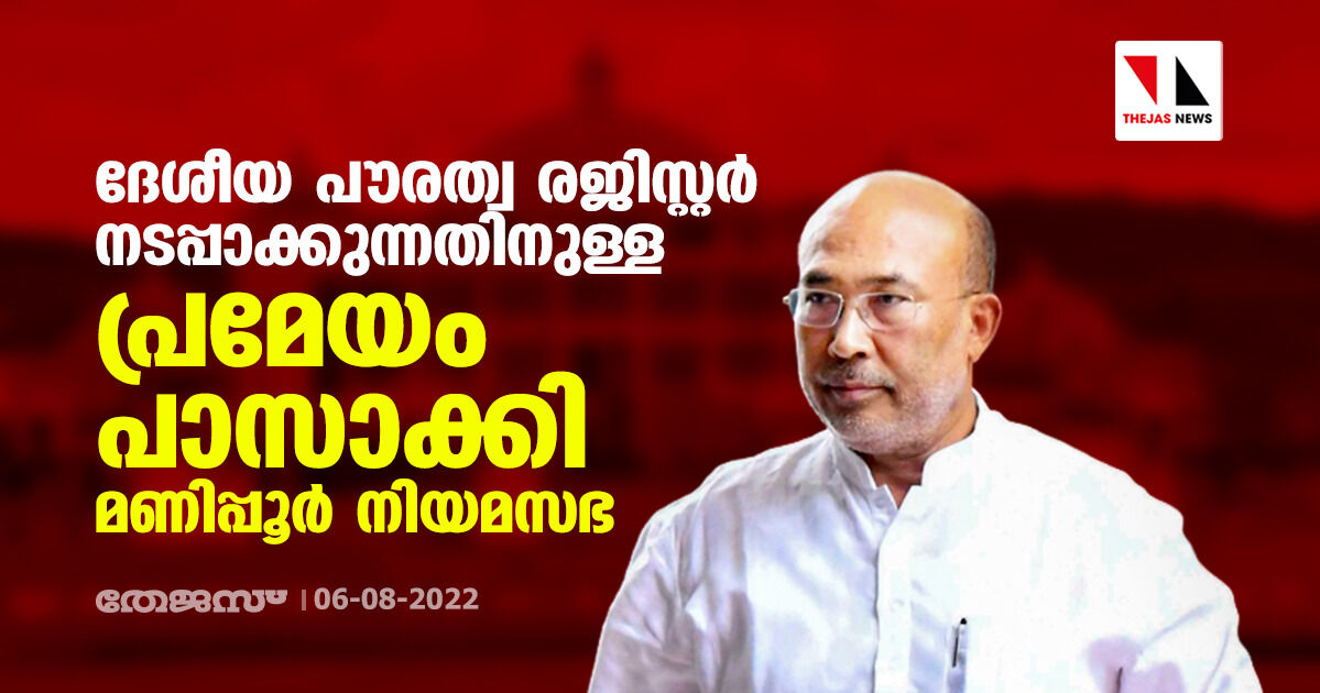ദേശീയ പൗരത്വ രജിസ്റ്റർ നടപ്പാക്കുന്നതിനുള്ള പ്രമേയം പാസാക്കി മണിപ്പൂർ നിയമസഭ