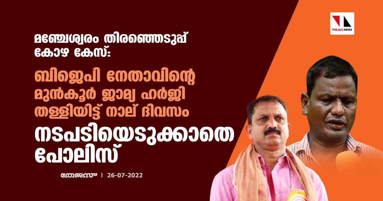 മഞ്ചേശ്വരം തിരഞ്ഞെടുപ്പ് കോഴ കേസ്: ബിജെപി നേതാവിന്റെ മുന്കൂര് ജാമ്യ ഹര്ജി തള്ളിയിട്ട് നാല് ദിവസം; നടപടിയെടുക്കാതെ പോലിസ്
