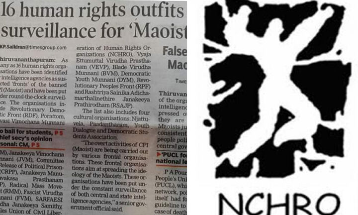 മാവോവാദി ബന്ധം: 16 മനുഷ്യാവകാശ സംഘടനകള് നിരീക്ഷണത്തിലെന്ന് റിപോര്ട്ട്
