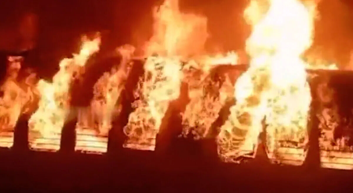തമിഴ്നാട്ടില് നിര്ത്തിയിട്ട ട്രെയിനിന് തീപ്പിടിച്ച് 10 പേര് മരിച്ചു