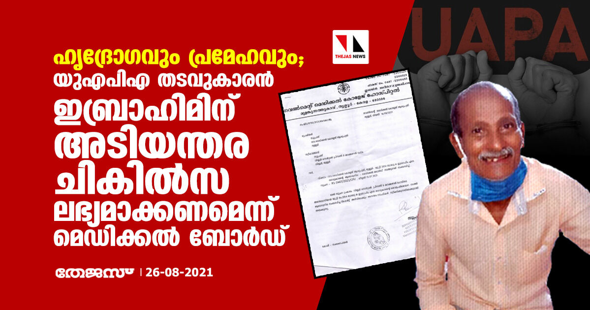 ഹൃദ്രോഗവും പ്രമേഹവും; യുഎപിഎ തടവുകാരന് ഇബ്രാഹിമിന് അടിയന്തര ചികില്സ ലഭ്യമാക്കണമെന്ന് മെഡിക്കല് ബോര്ഡ്