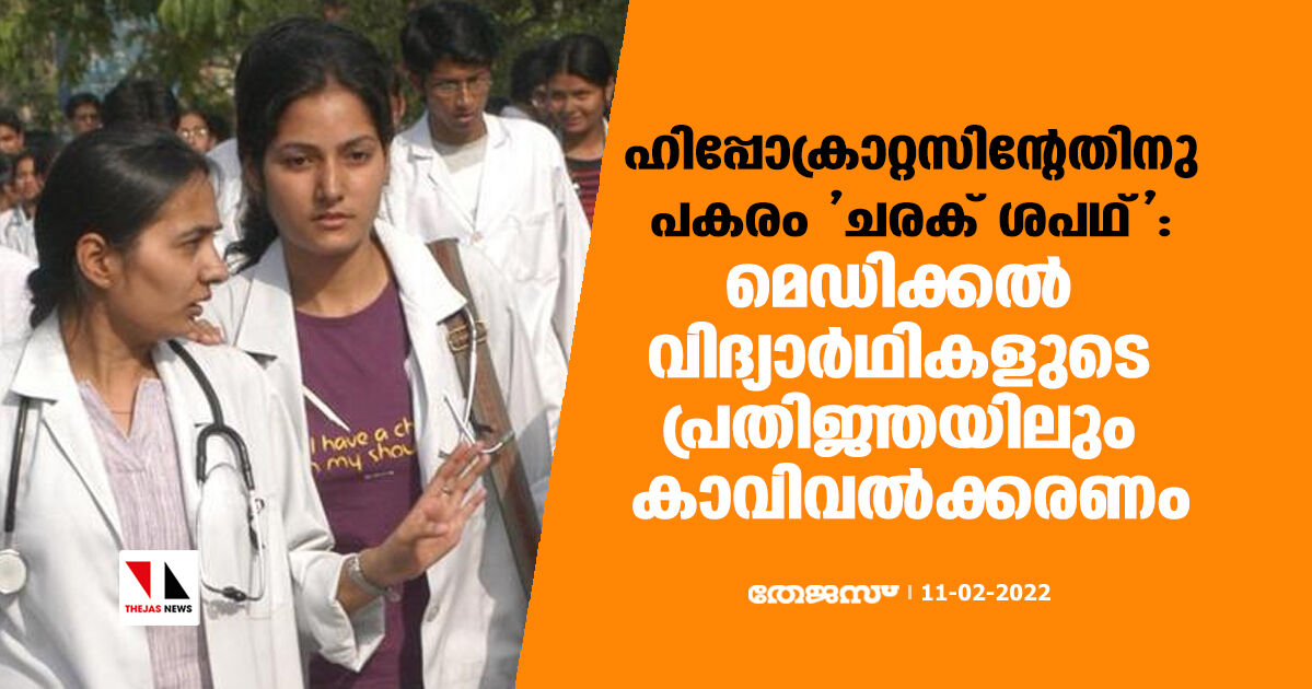 ഹിപ്പോക്രാറ്റിക് സത്യപ്രതിജ്ഞയ്ക്ക് പകരം 'ചരക് ശപഥ്' എന്നത് രാഷ്ട്രീയ സ്വയംസേവക സംഘത്തിന്റെ ദീര്ഘകാലമായുള്ള ആവശ്യമാണ്.