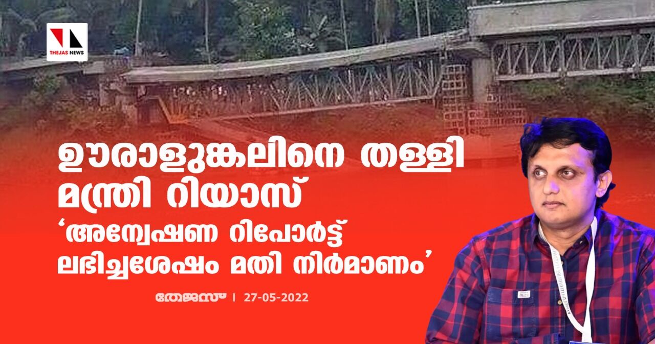 ഊരാളുങ്കലിനെ തള്ളി മന്ത്രി റിയാസ്; 'അന്വേഷണ റിപോര്ട്ട് ലഭിച്ചശേഷം മതി നിര്മാണം'