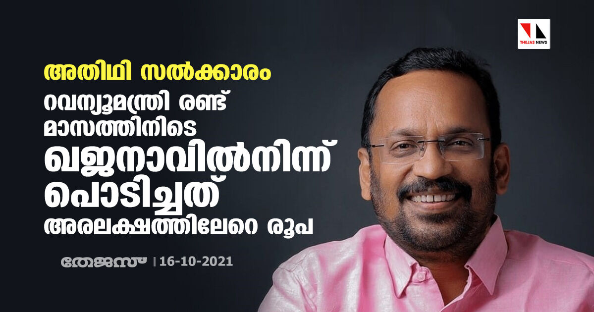 അതിഥി സൽക്കാരം: റവന്യൂമന്ത്രി രണ്ടു മാസത്തിനിടെ ഖജനാവിൽ നിന്ന് പൊടിച്ചത് അരലക്ഷത്തിലേറെ രൂപ
