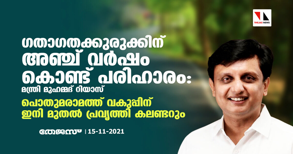 സംസ്ഥാനത്തെ ഗതാഗതക്കുരുക്കിന് അഞ്ച് വര്ഷം കൊണ്ട് പരിഹാരം: മന്ത്രി മുഹമ്മദ് റിയാസ്