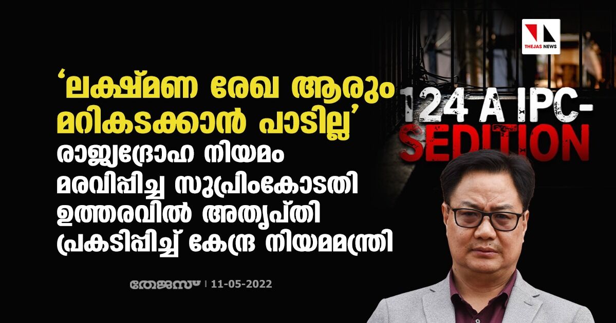 'ലക്ഷ്മണ രേഖ ആരും മറികടക്കാന് പാടില്ല'; രാജ്യദ്രോഹ നിയമം മരവിപ്പിച്ച സുപ്രിംകോടതി ഉത്തരവില് അതൃപ്തി പ്രകടിപ്പിച്ച് കേന്ദ്ര നിയമമന്ത്രി