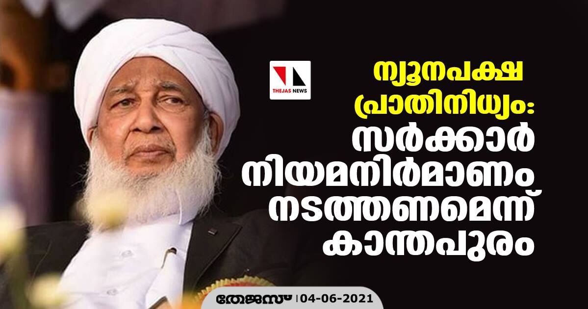 ന്യൂനപക്ഷ പ്രാതിനിധ്യം: സര്ക്കാര് നിയമനിര്മാണം നടത്തണമെന്ന് കാന്തപുരം
