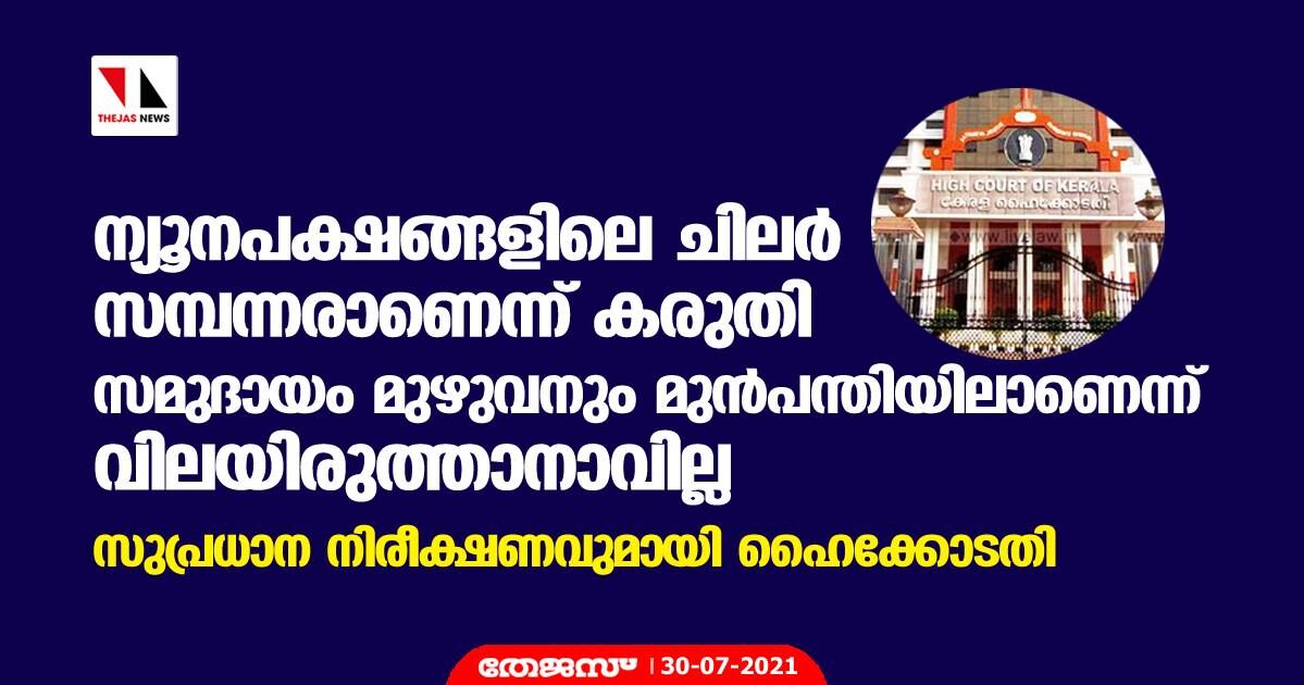 ന്യൂനപക്ഷങ്ങളിലെ ചിലര് സമ്പന്നരാണെന്ന് കരുതി സമുദായം മുഴുവനും മുന്പന്തിയിലാണെന്ന് വിലയിരുത്താനാവില്ല; സുപ്രധാന നിരീക്ഷണവുമായി ഹൈക്കോടതി