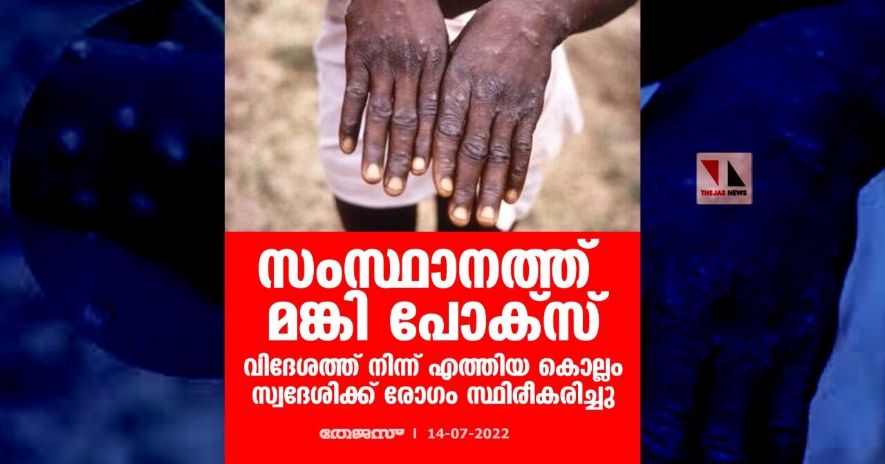 സംസ്ഥാനത്ത് മങ്കി പോക്സ്; വിദേശത്ത് നിന്ന് എത്തിയ കൊല്ലം സ്വദേശിക്ക് രോഗം സ്ഥിരീകരിച്ചു