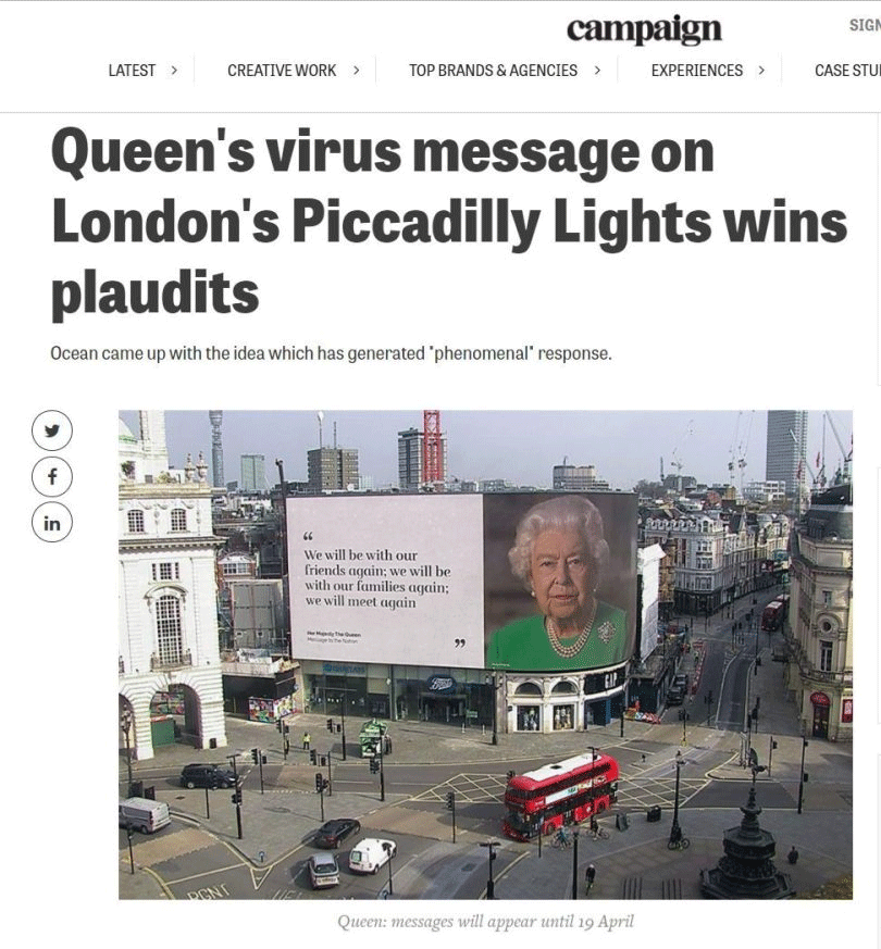2020 ഏപ്രില് ഒമ്പതിന് രാജ്ഞിയുടെ പേരില് ബ്രിട്ടീഷ് മീഡിയാ ഗ്രൂപ്പ് സ്ഥാപിച്ച ബോര്ഡാണ് മോദി അനുകൂലികള് ഫോട്ടോഷോപ്പ് ചെയ്ത് പ്രചരിപ്പിക്കുന്നതെന്നും ആള്ട്ട് ന്യൂസ് നടത്തിയ പരിശോധനയില് വ്യക്തമായി.