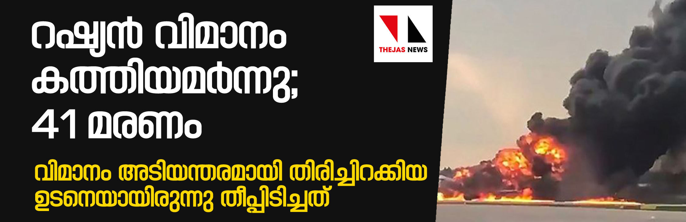 റഷ്യയിലെ ഷെറെമെത്യേവോ വിമാനത്താവളത്തില്നിന്ന് 78 യാത്രക്കാരുമായി മുര്മാന്ക് നഗരത്തിലേക്ക് പുറപ്പെട്ട സുഖോയ് സൂപ്പര്ജെറ്റ്100 വിമാനത്തിനാണ് തീപിടിച്ചത്.