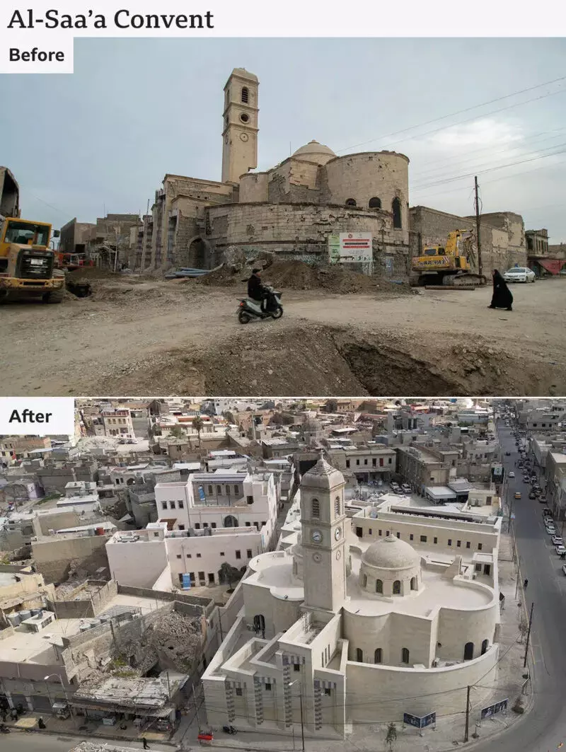 2014ല് ഐഎസ് മൊസൂള് നഗരം പിടിച്ചിരുന്നു. മൂന്നുവര്ഷം കഴിഞ്ഞപ്പോള് യുഎസ് പിന്തുണയോടെ ഇറാഖി സൈന്യം മൊസൂള് തിരികെ പിടിച്ചു. ഐഎസിന്റെ ഇറാഖിലെ അവസാന ശക്തികേന്ദ്രമായിരുന്നു മൊസൂള്. ഈ യുദ്ധത്തിലാണ് പള്ളിയും പ്രദേശത്തെ ചരിത്രപ്രസിദ്ധമായ മറ്റു ആരാധനാലയങ്ങളും തകര്ന്നത്. ഇതിന് ശേഷം എട്ടുവര്ഷമാണ് പുനര്നിര്മാണം നീണ്ടത്. നഗരത്തിലെ അല് സാ കോണ്വെന്റും പുനര്നിര്മിച്ചിട്ടുണ്ട്.