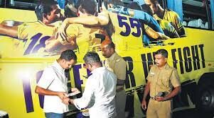 ടീം ഉപയോഗിക്കുന്ന രണ്ട് ബസ്സുകളില് മഞ്ഞ സ്റ്റിക്കര് പതിച്ച ബസ്സിന്റെ ഫിറ്റ്നസാണ് റദ്ദാക്കിയത്.