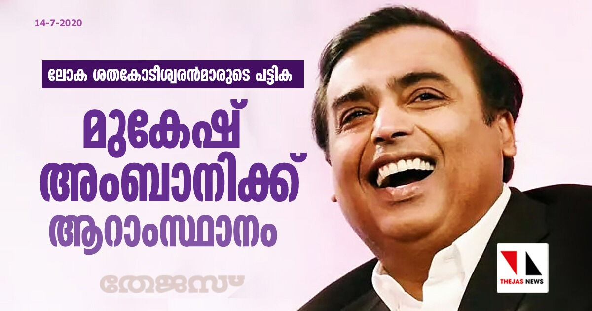 ലോക ശതകോടീശ്വരന്മാരുടെ പട്ടിക: മുകേഷ് അംബാനിക്ക് ആറാംസ്ഥാനം
