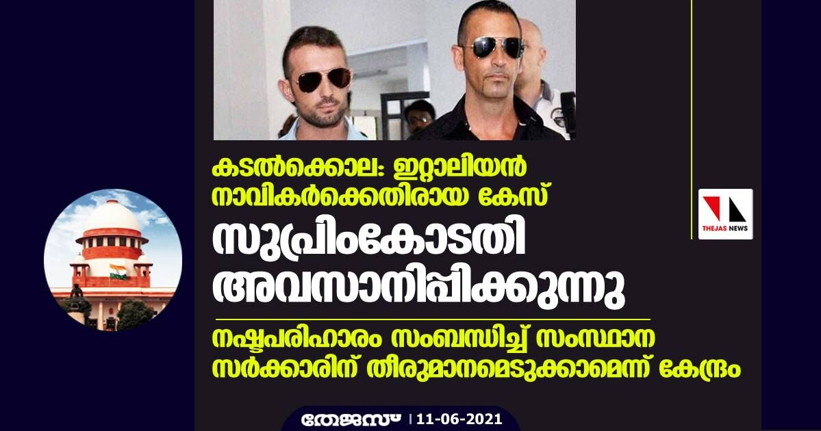കടല്ക്കൊല: ഇറ്റാലിയന് നാവികര്ക്കെതിരായ കേസ് സുപ്രിംകോടതി അവസാനിപ്പിക്കുന്നു; നഷ്ടപരിഹാരം സംബന്ധിച്ച് സംസ്ഥാന സര്ക്കാരിന് തീരുമാനമെടുക്കാമെന്ന് കേന്ദ്രം
