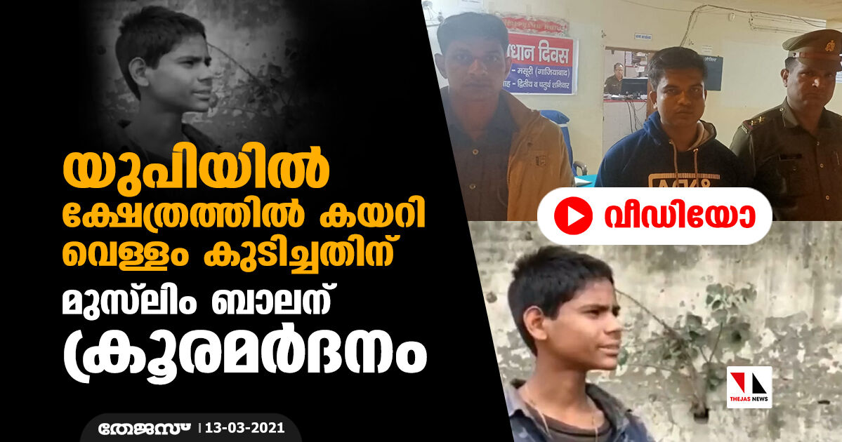 യുപിയില് ക്ഷേത്രത്തില് കയറി വെള്ളം കുടിച്ചതിന് മുസ്ലിം ബാലന് ക്രൂരമര്ദനം(വീഡിയോ)