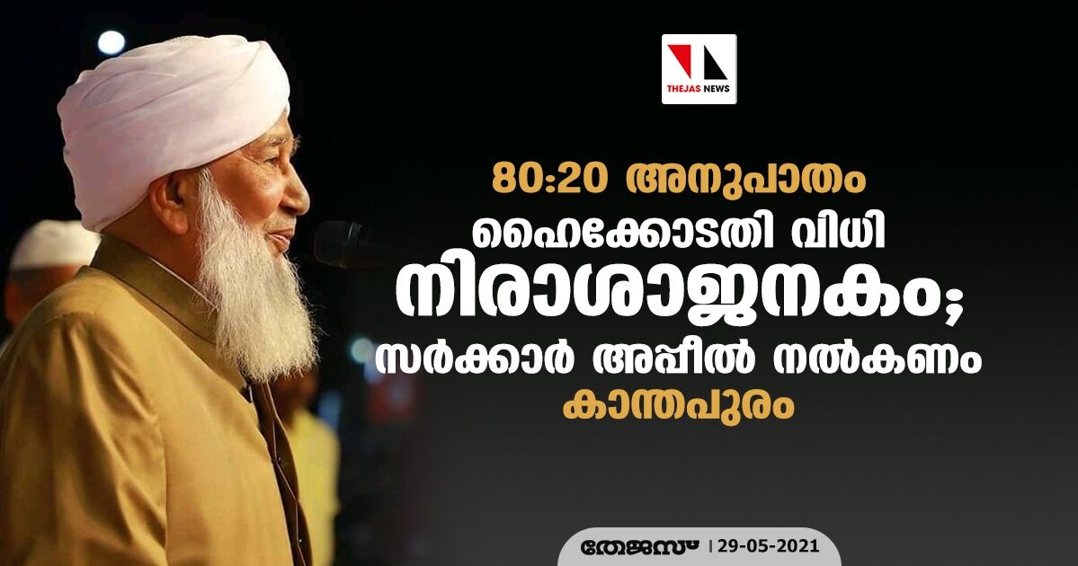 80:20 അനുപാതം: ഹൈക്കോടതി വിധി നിരാശാജനകം; സര്ക്കാര് അപ്പീല് നല്കണം- കാന്തപുരം