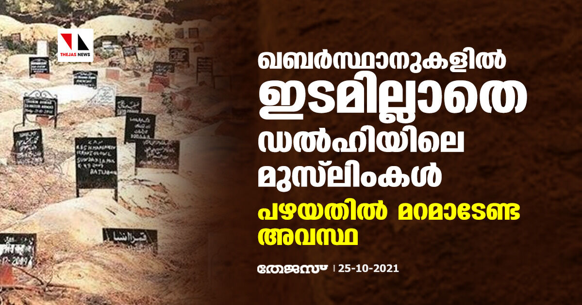 കൊവിഡ് രണ്ടാം തരംഗത്തില് ഡല്ഹിയിലെ ഏറ്റവും വലിയ മുസ്ലീം ഖബറിടംപോലും നിറഞ്ഞ മട്ടാണ്. പകര്ച്ചവ്യാധി പടര്ന്നുപിടിച്ചതല്ല സ്ഥലമില്ലാതാകാന് ഇടയാക്കിയത്. ദേശീയ തലസ്ഥാനത്ത് വര്ദ്ധിച്ചുവരുന്ന മുസ്ലിം ജനസംഖ്യയാണ് സ്ഥലപരിമിതിക്ക് കാരണം. ഇതിനനുസൃതമായി ഖബര് സ്ഥാനുകളുടെ എണ്ണമോ വിസ്തൃതിയോ വര്ദ്ധിപ്പിക്കാനായിട്ടില്ല. ഡല്ഹിയിലും സമീപ പ്രദേശങ്ങളിലുമായി വിവിധ ഭാഗങ്ങളിലായി 704 മുസ്ലിം ഖബര്സ്ഥാന് ഉണ്ടെന്നാണ് കണക്ക്. എന്നാല് ഇതില് 131 എണ്ണം മാത്രമാണ് ഇപ്പോള് പ്രവര്ത്തിക്കുന്നത്. ഈ 131 ല്, 16 ഖബറിടങ്ങളുടെ ഉടമസ്ഥാവകാശത്തെച്ചൊല്ലിയുള്ള വ്യവഹാരങ്ങള് നടക്കുകയോ ചെളി നിറഞ്ഞതോ വെള്ളം കെട്ടിക്കിടക്കുന്നതോ ആയതിനാല് ഉപയോഗ യോഗ്യവുമല്ല. നഗരത്തിലെ 11 ജില്ലകളില് ഏറ്റവും കൂടുതല് ഖബര്സ്ഥാനുകള് ഉള്ളത് ദക്ഷിണ ഡല്ഹിയിലാണ് (33) വടക്കുപടിഞ്ഞാറന് ഡല്ഹി (19), വടക്ക് ഡല്ഹി (17), തെക്ക് പടിഞ്ഞാറന് ഡല്ഹി (11), വടക്ക് കിഴക്കന് ഡല്ഹി (10), പടിഞ്ഞാറ് ഡല്ഹി, കിഴക്കന് ഡല്ഹി (9 വീതം), സൗത്ത് ഈസ്റ്റ് ഡല്ഹി (എട്ട്), സെന്ട്രല് ഡല്ഹി (ആറ്), ഷഹദാര (അഞ്ച്), ന്യൂഡല്ഹി (നാല്) എന്നിവ അവരോഹണ ക്രമത്തില്.