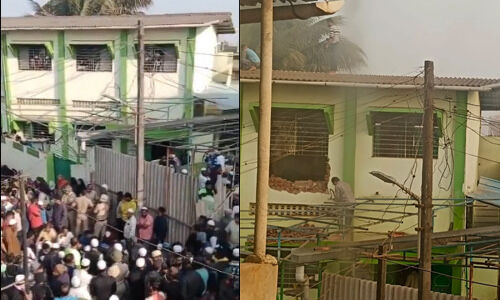 ലക്ഷതീര്ഥ് വസഹത് കോളനിയിലെ അലിഫ് അഞ്ജുമാന് മദ്റസയും പള്ളിയും നിയമവിരുദ്ധമായാണ് നിര്മിച്ചതെന്നും അടച്ചുപൂട്ടണമെന്നും ആവശ്യപ്പെട്ട് ബജ്റംഗ്ദളാണ് പരാതി നല്കിയത്. ഇതേത്തുടര്ന്ന് മദ്റസ ട്രസ്റ്റിന് കോര്പറേഷന് അധികൃതര് കെട്ടിടം പൊളിച്ചുനീക്കണമെന്ന് ആവശ്യപ്പെട്ട് നോട്ടീസ് നല്കി. ഇതോടെ, ട്രസ്റ്റ് അധികൃതര് കോടതിയില് ഹര്ജി നല്കി. ഹരജിയില് കോടതി വാദം കേട്ട കോടതി നടപടികള് തല്ക്കാലത്തേക്ക് സ്റ്റേ ചെയ്തു. ജനുവരി 23ന് നടന്ന ഹിയറിങില് നടപടി നിയന്ത്രിക്കണമെന്ന അപേക്ഷ കോടതി തള്ളി. ഇതിനെതിരേ മദ്റസ അധികൃതര് നല്കിയ അപ്പീല് ഫെബ്രുവരി രണ്ടിന് കോടതിയില് പരിഗണിക്കാനിരിക്കെയാണ് മുനിസിപ്പല് കോര്പറേഷന് അധികൃതര് രണ്ടുദിവസം മുമ്പെത്തി പൊളിച്ചുനീക്കാന് ശ്രമിച്ചത്. കോടതിയില് വാദം കേള്ക്കാനിരിക്കുന്ന കേസില് പൊളിച്ചുനീക്കാനെത്തിയതാണ് മുസ്ലിംകള് ചോദ്യം ചെയ്തത്. അതേസമയം,