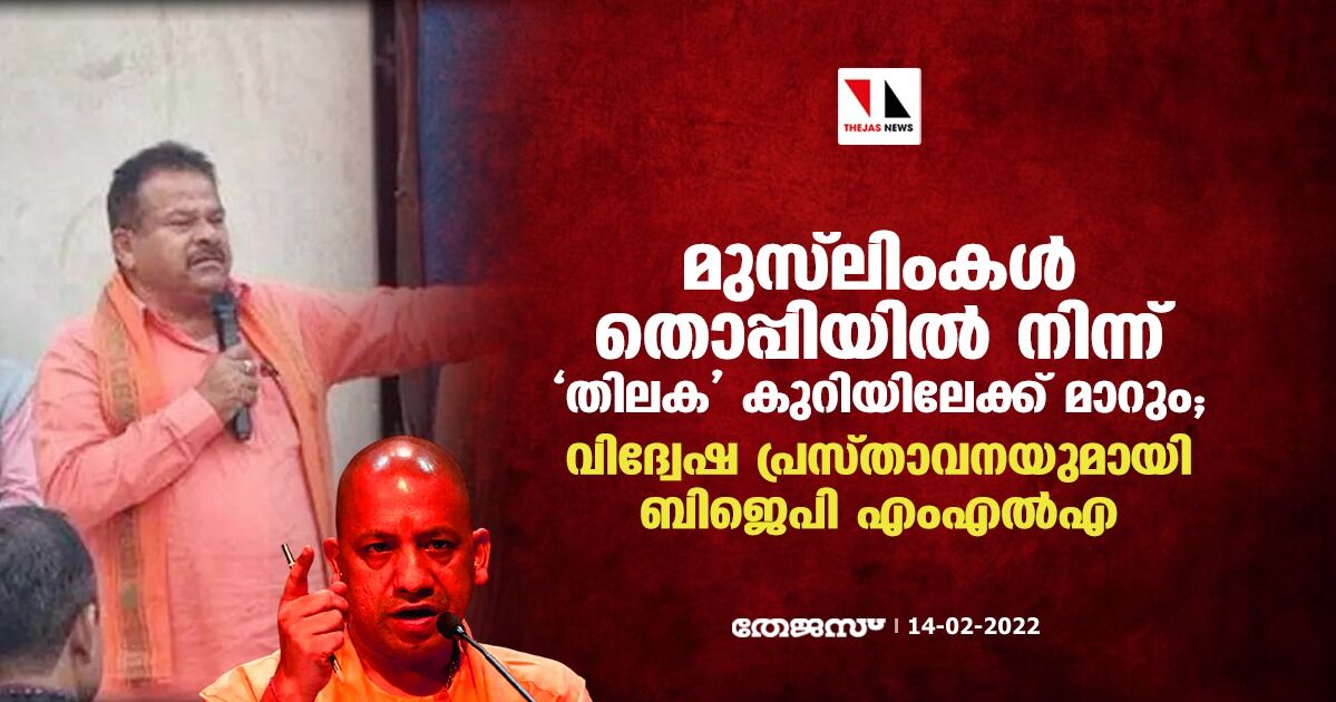 മുസ്ലിംകള് തൊപ്പിയില് നിന്ന് 'തിലക' കുറിയിലേക്ക് മാറും; വിദ്വേഷ പ്രസ്താവനയുമായി ബിജെപി എംഎല്എ